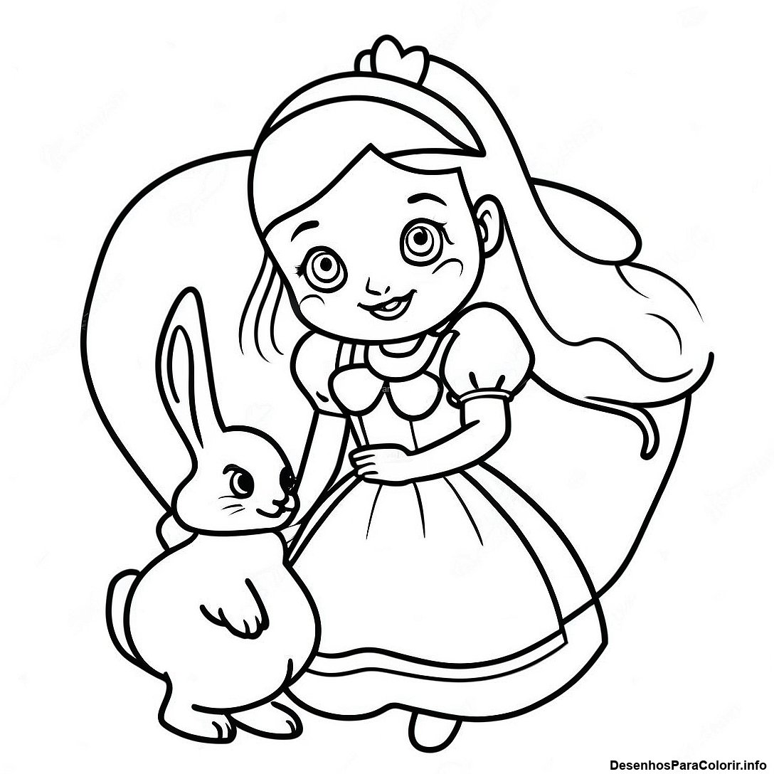 Alice Com O Coelho Branco Para Colorir