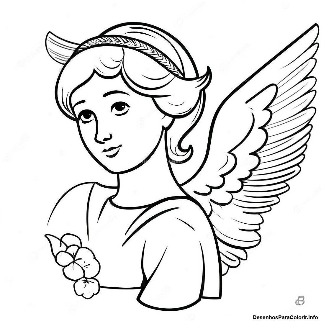 Baixar PDF Imprimível de Anjo Majestoso Com Asas Para Colorir