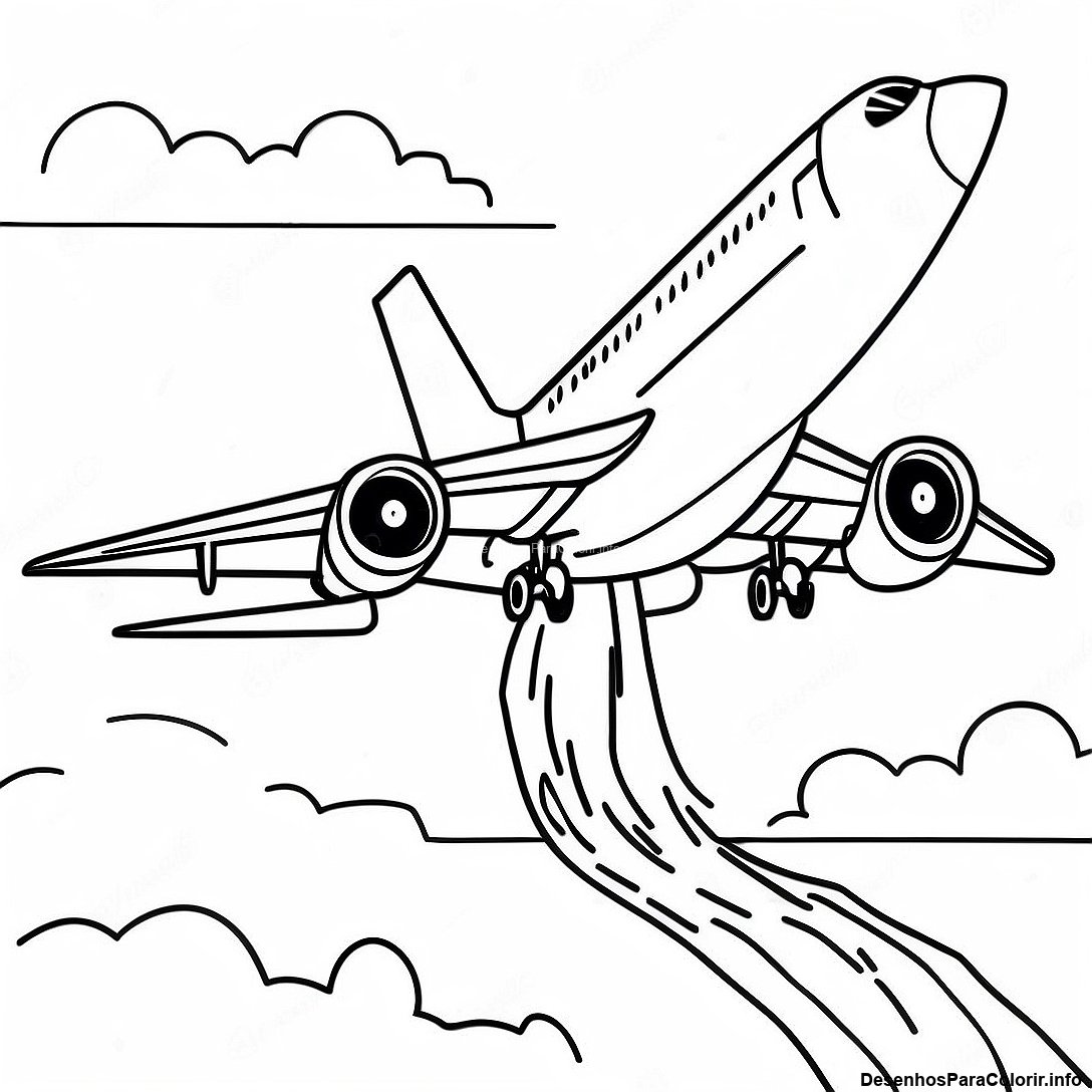 Baixar PDF Imprimível de Avião A Jato Decolando Página Para Colorir