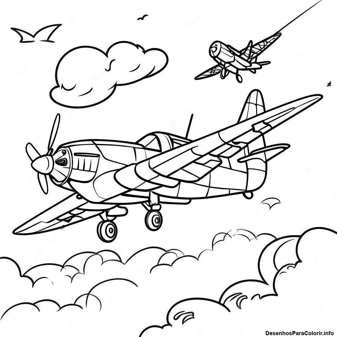 Baixar PDF Imprimível de Avião Militar Em Ação Página Para Colorir