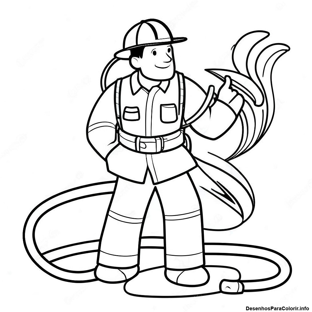 Bombeiro Corajoso Com Mangueira Pagina Para Colorir
