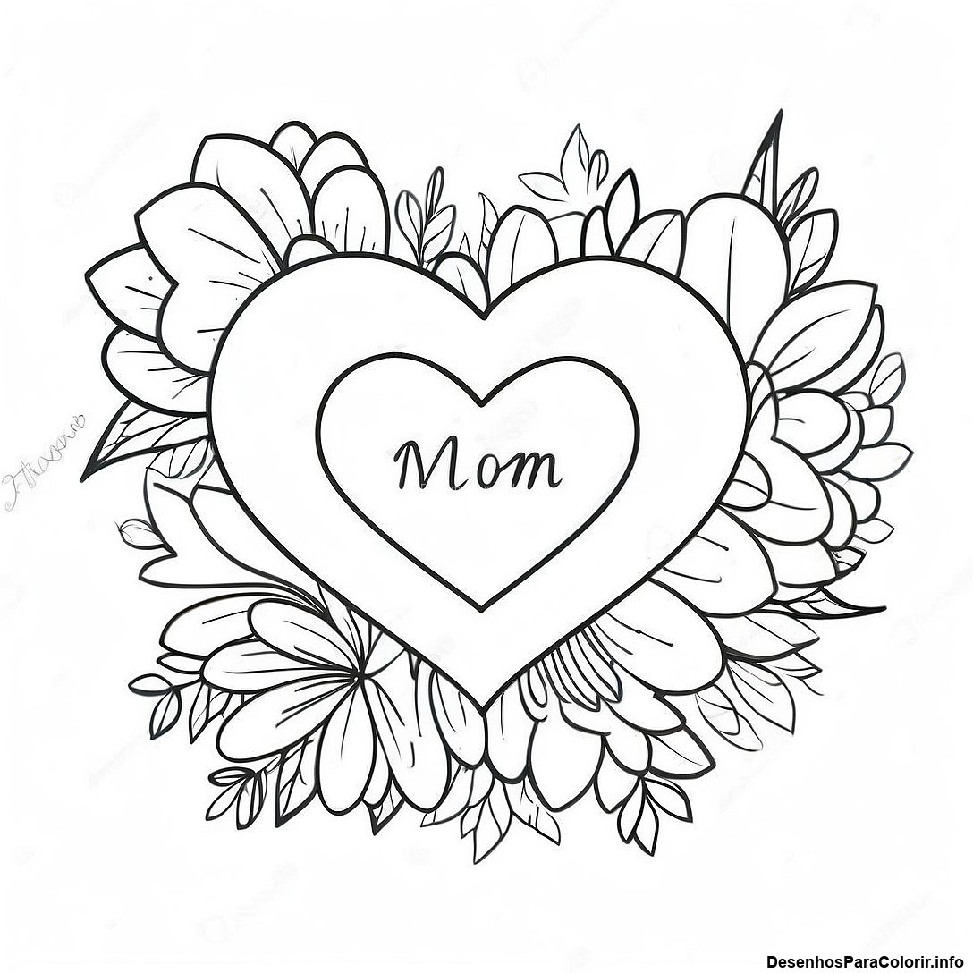 Baixar PDF Imprimível de Coração Doce Do Dia Das Mães Para Colorir