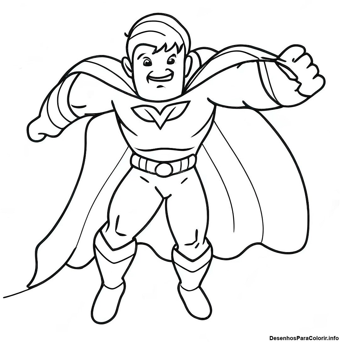 Página para Colorir Poderoso Super-Herói Voando pelo Céu