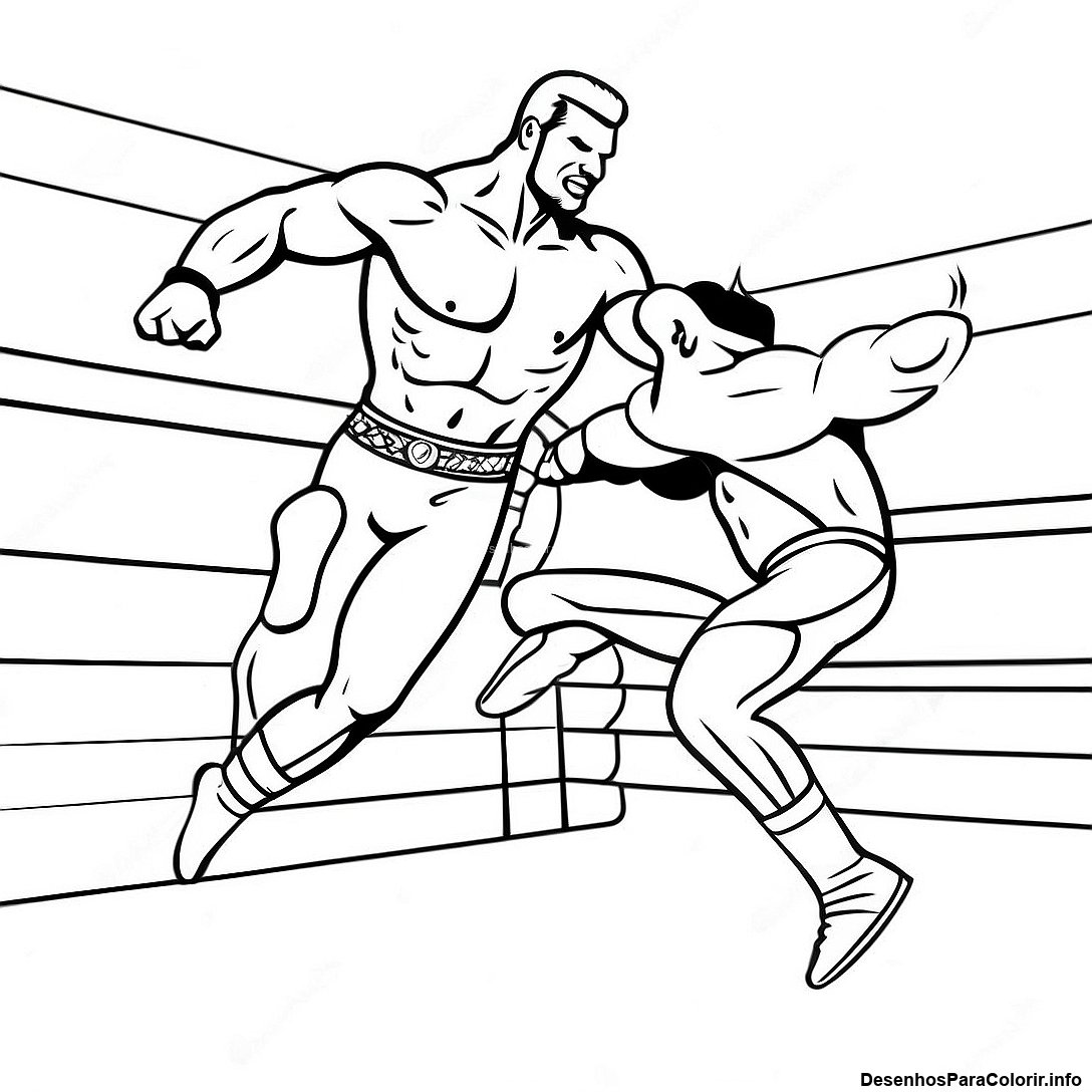 Baixar PDF Imprimível de Desenho Para Colorir Do Lutador Da Wwe Pulando Em Cima Do Oponente