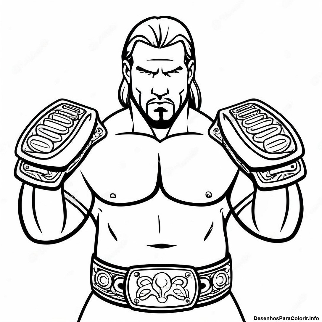 Baixar PDF Imprimível de Desenho Para Colorir Do Triple H 3d Segurando Dois Cintos