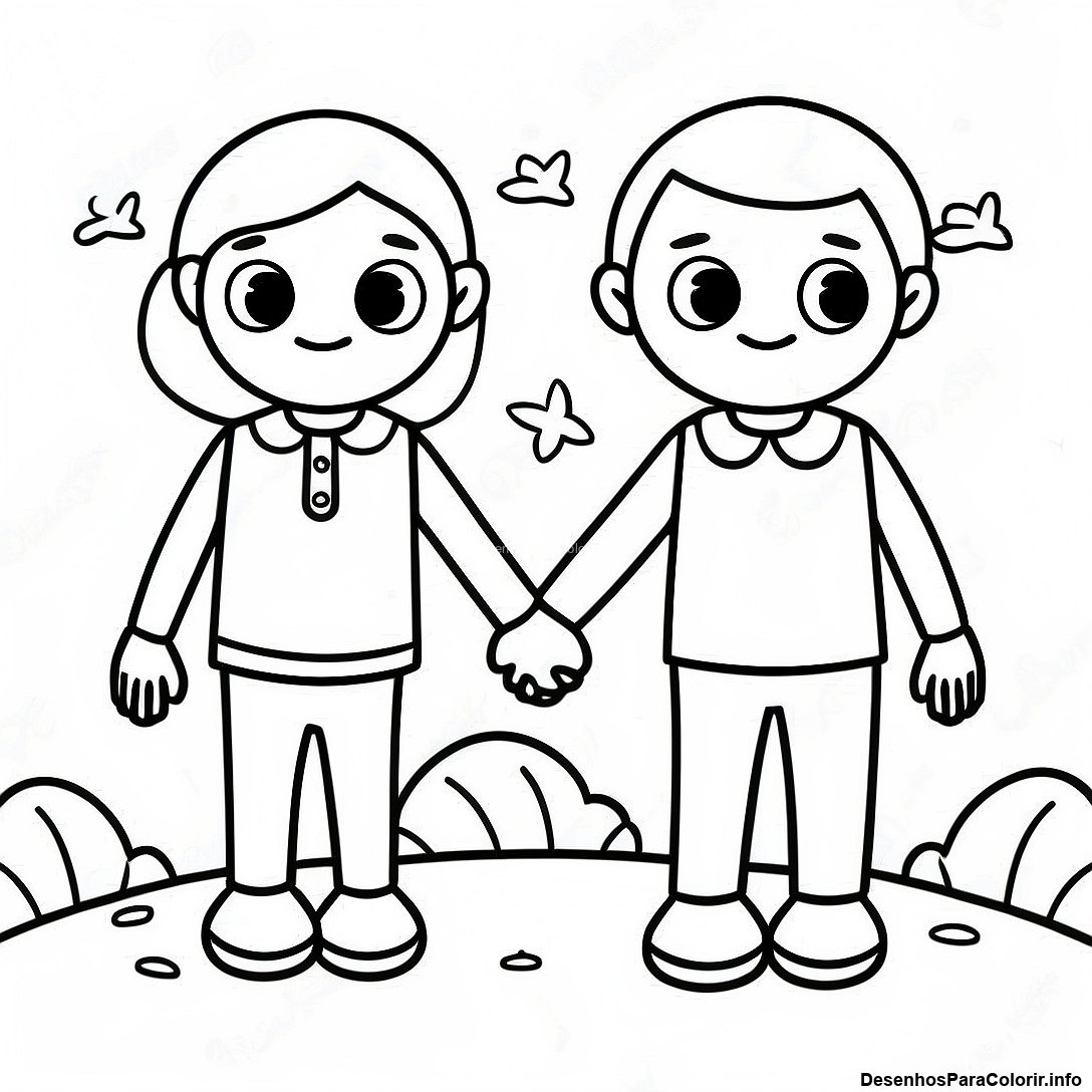 Baixar PDF Imprimível de Dois Melhores Amigos De Mãos Dadas Página Para Colorir