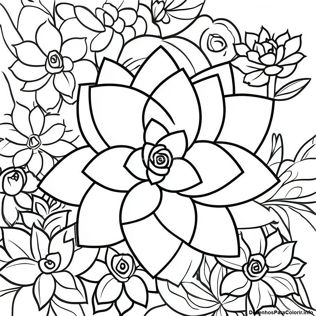 Baixar PDF Imprimível de Jardim De Suculentas Colorido Página Para Colorir