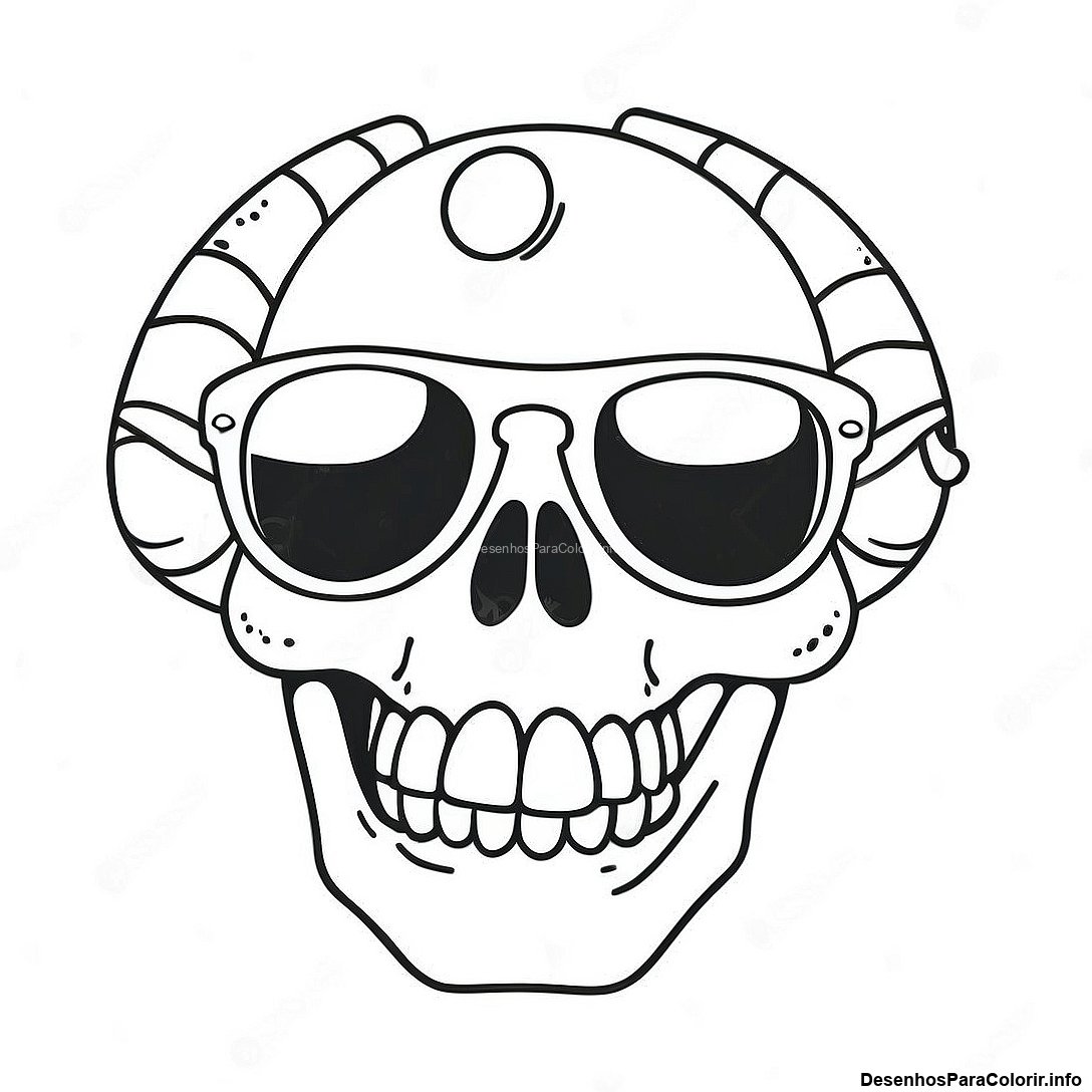 Baixar PDF Imprimível de Página Para Colorir Caveira Engraçada Com Óculos De Sol