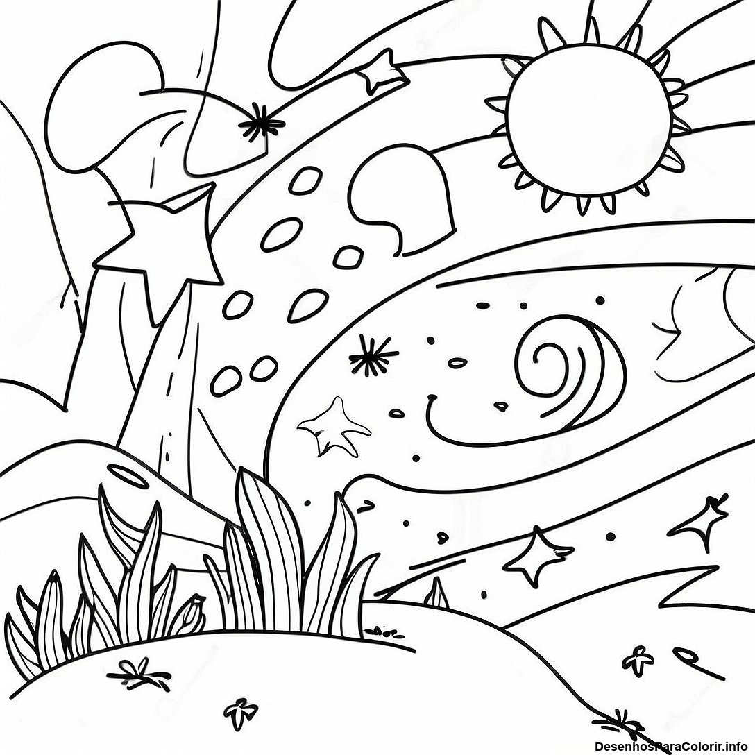 Baixar PDF Imprimível de Página Para Colorir Céu Estrelado À Noite