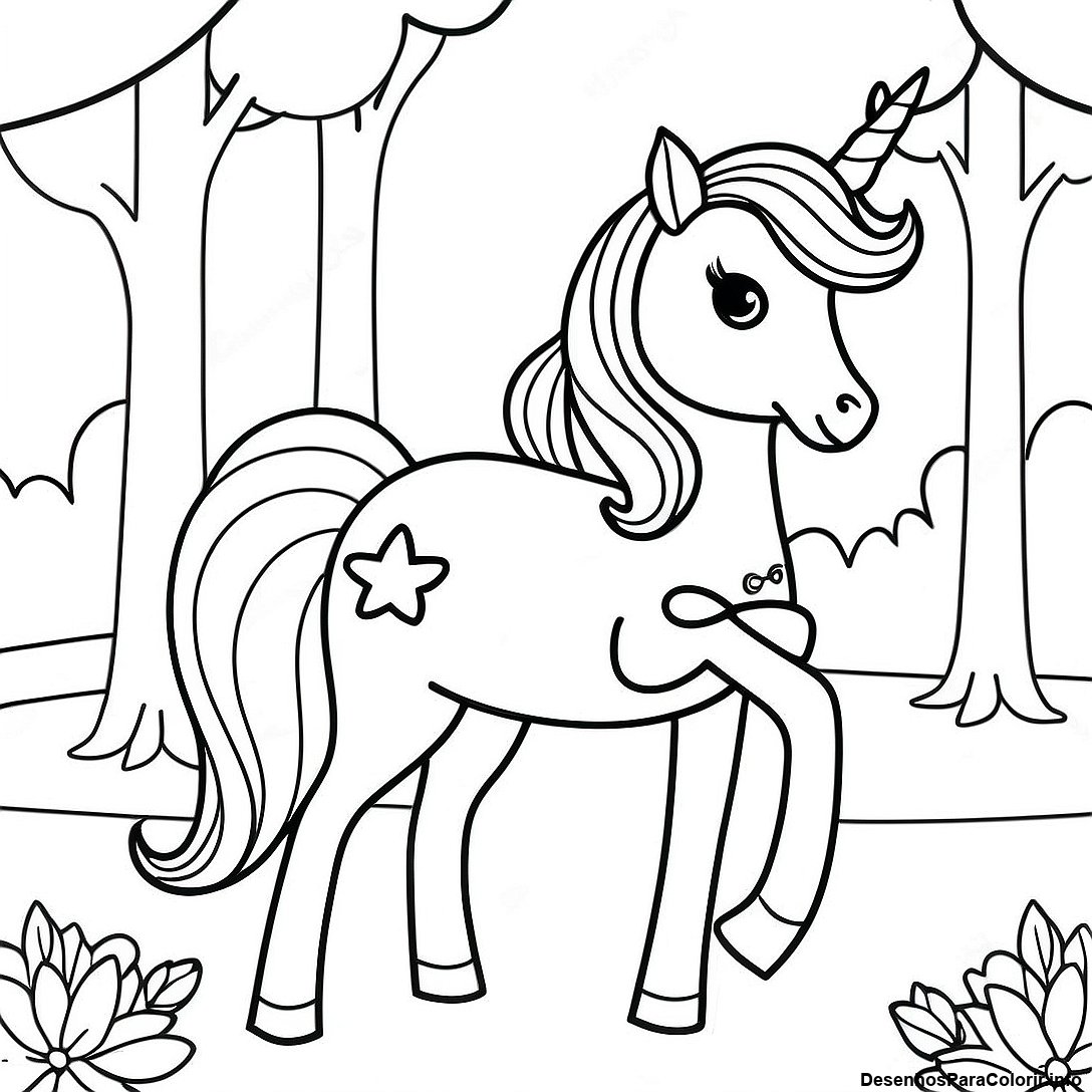 Baixar PDF Imprimível de Página Para Colorir Da Barbie Unicórnio Na Floresta Mágica