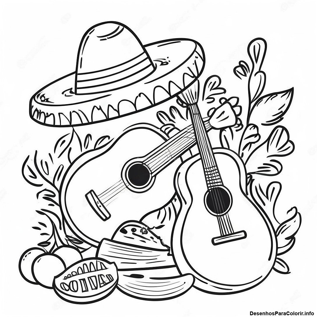 Baixar PDF Imprimível de Página Para Colorir Da Colorida Festa Mexicana