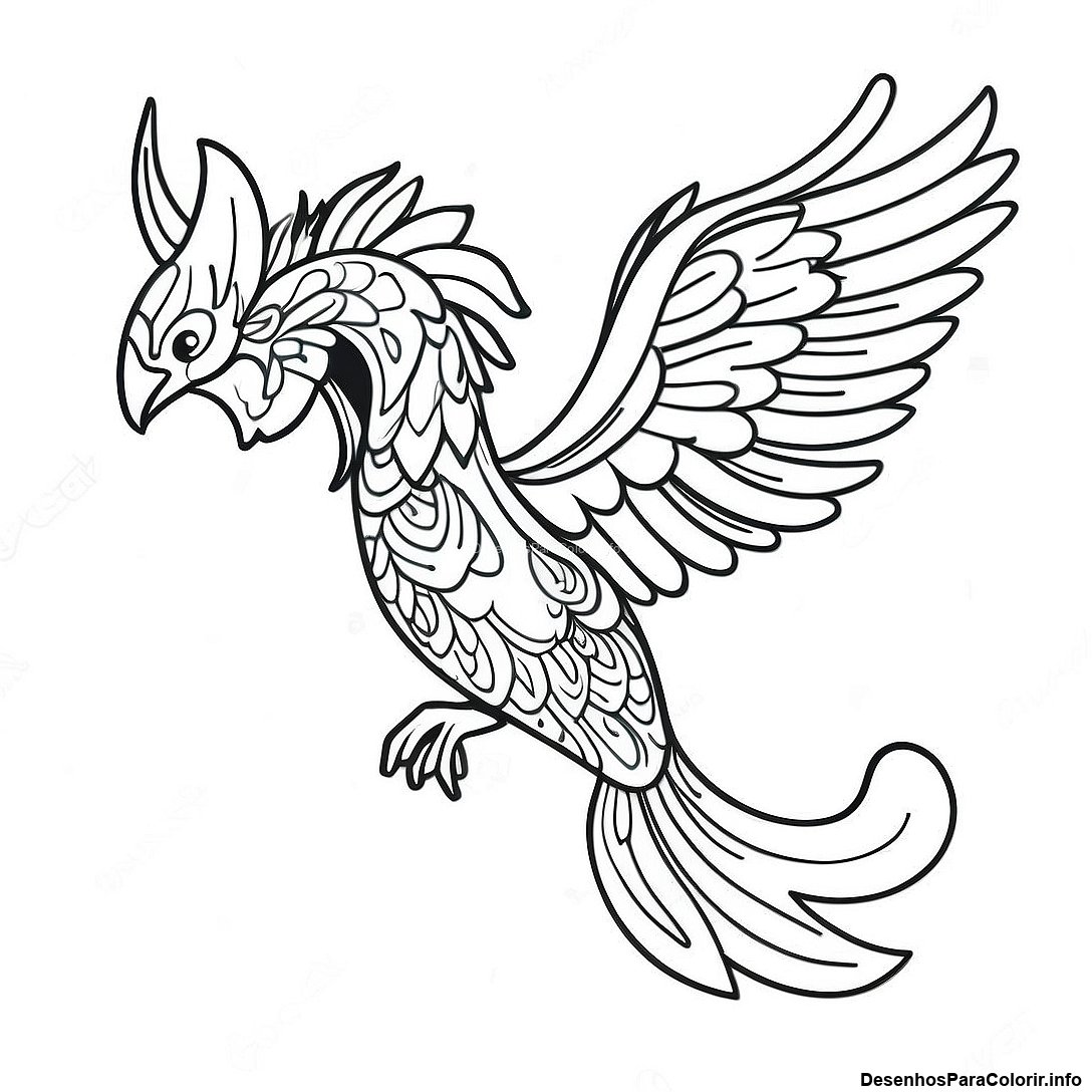 Baixar PDF Imprimível de Página Para Colorir Da Fênix Colorida Em Voo