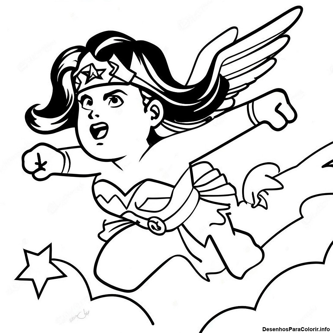 Pagina Para Colorir Da Mulher Maravilha Voando Pelo Ceu