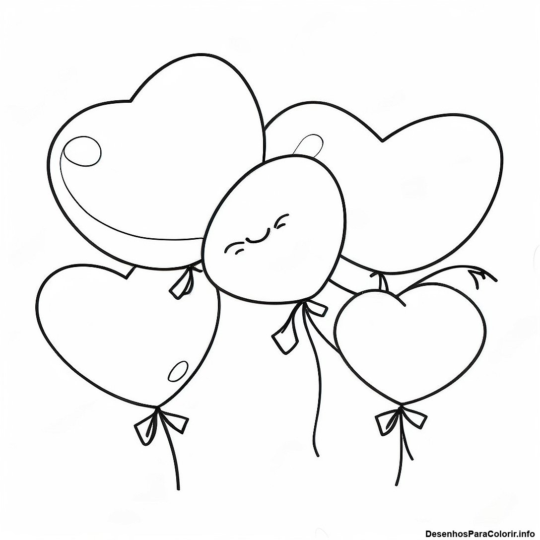 Baixar PDF Imprimível de Página Para Colorir De Balões Em Forma De Coração Fofos