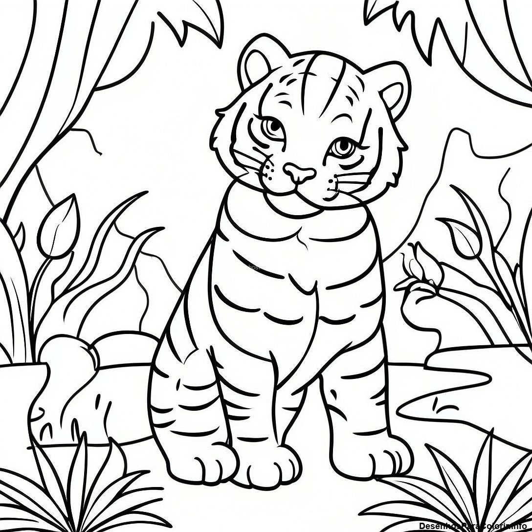 Baixar PDF Imprimível de Página Para Colorir De Bengals Em Uma Cena De Selva