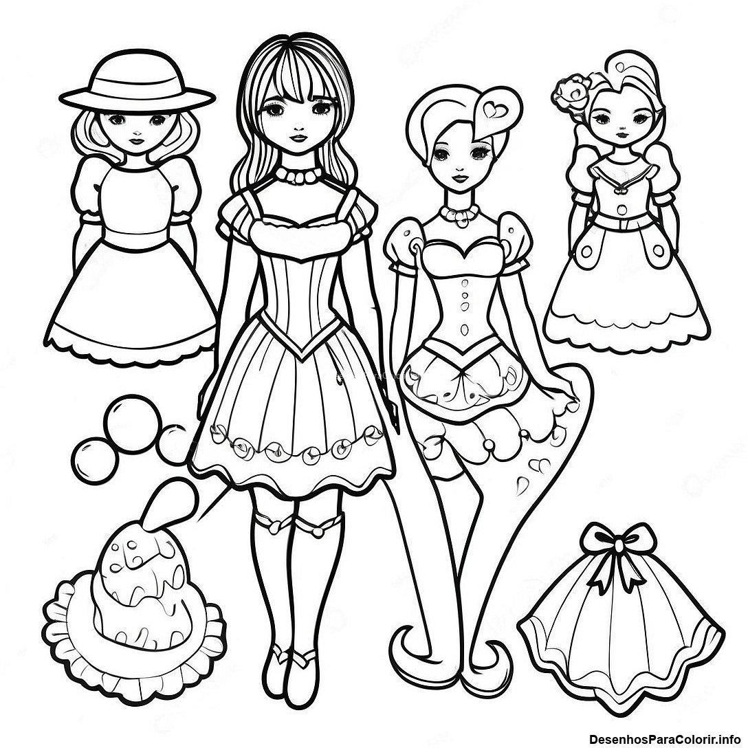 Baixar PDF Imprimível de Página Para Colorir De Bonecas De Papel De Fantasia