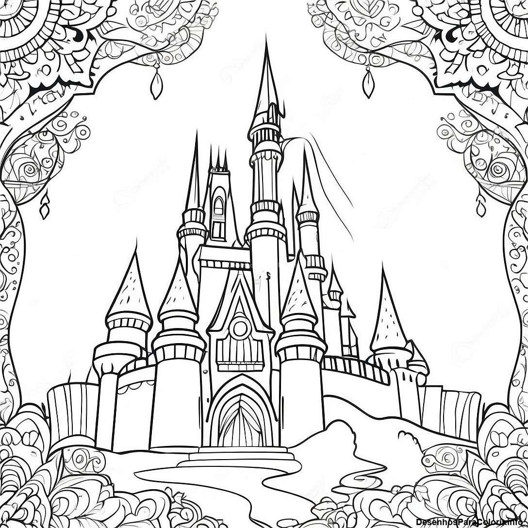 Baixar PDF Imprimível de Página Para Colorir De Castelo Da Disney Intricado