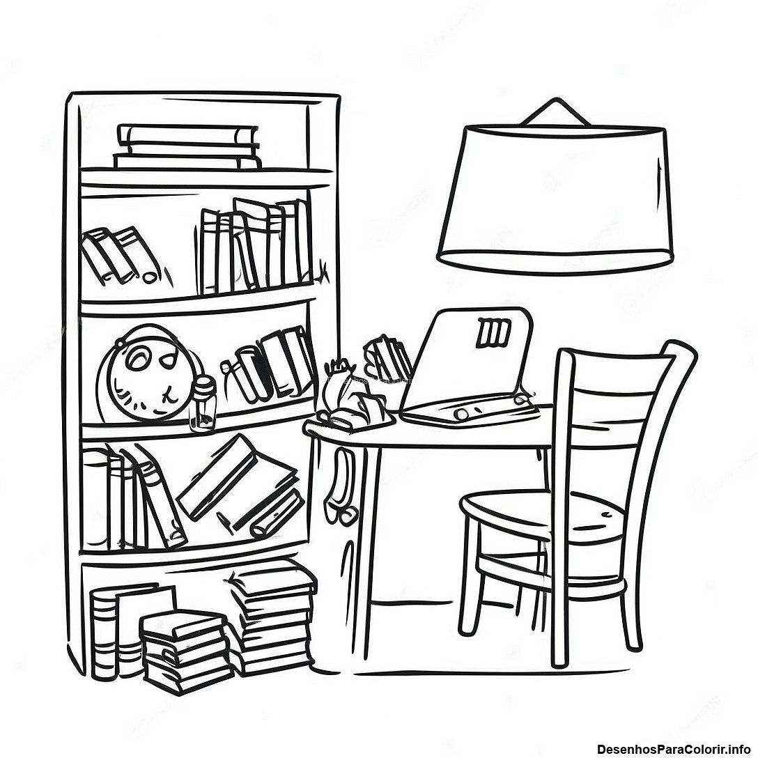 Baixar PDF Imprimível de Página Para Colorir De Cena Colorida Da Prateleira De Páginas