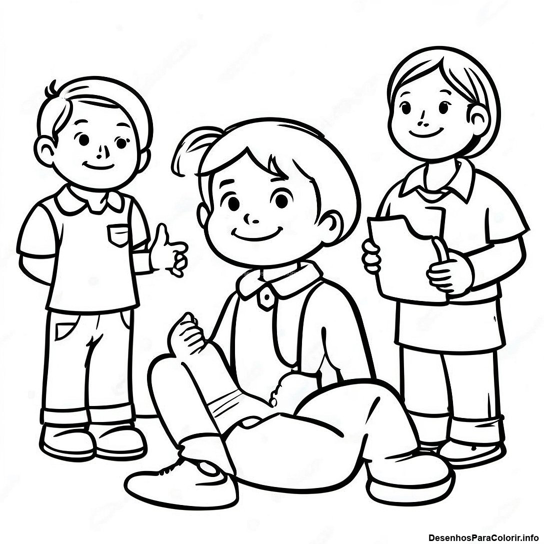 Baixar PDF Imprimível de Página Para Colorir De Crianças Respeitosas Ouvindo
