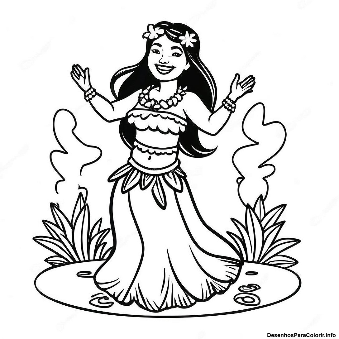 Baixar PDF Imprimível de Página Para Colorir De Dançarina De Hula No Luau