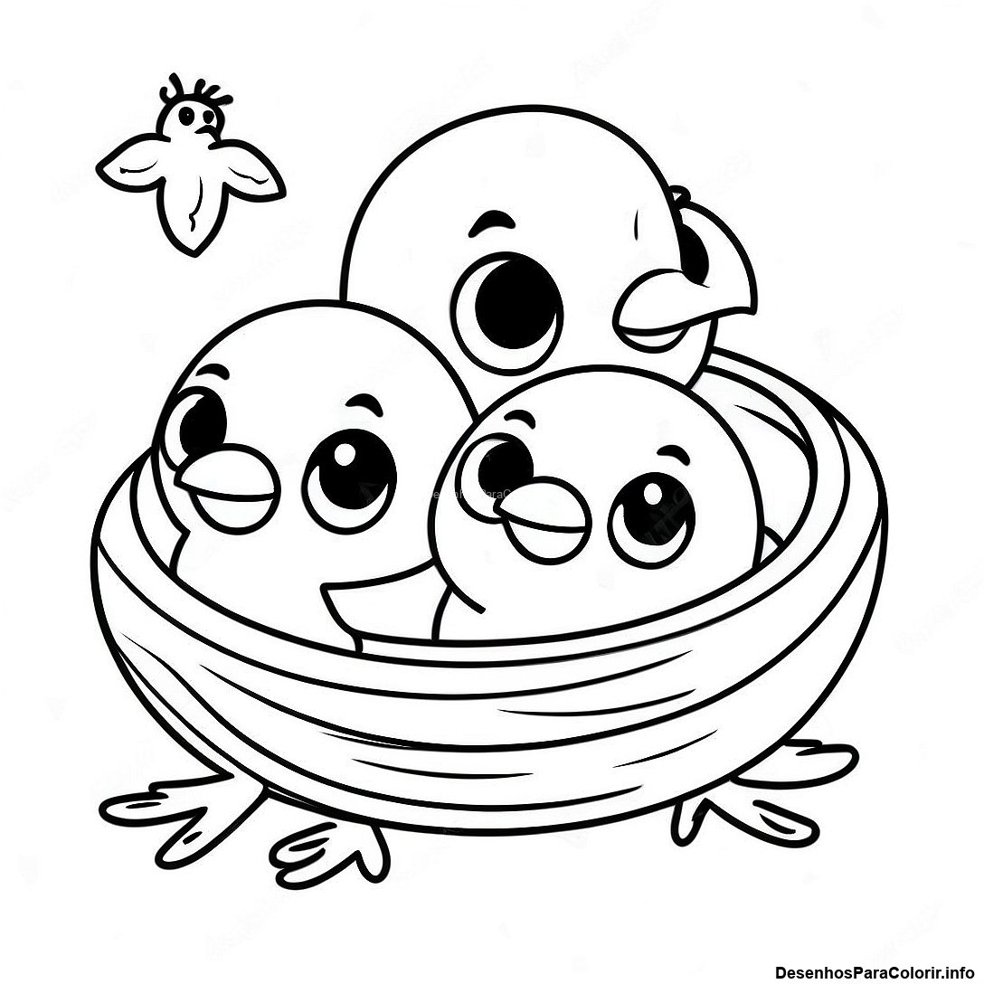 Baixar PDF Imprimível de Página Para Colorir De Filhotes De Corvo Fofos Ninho