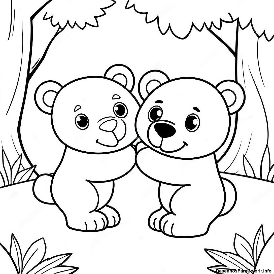 Baixar PDF Imprimível de Página Para Colorir De Filhotes Fofos Brincando Na Floresta