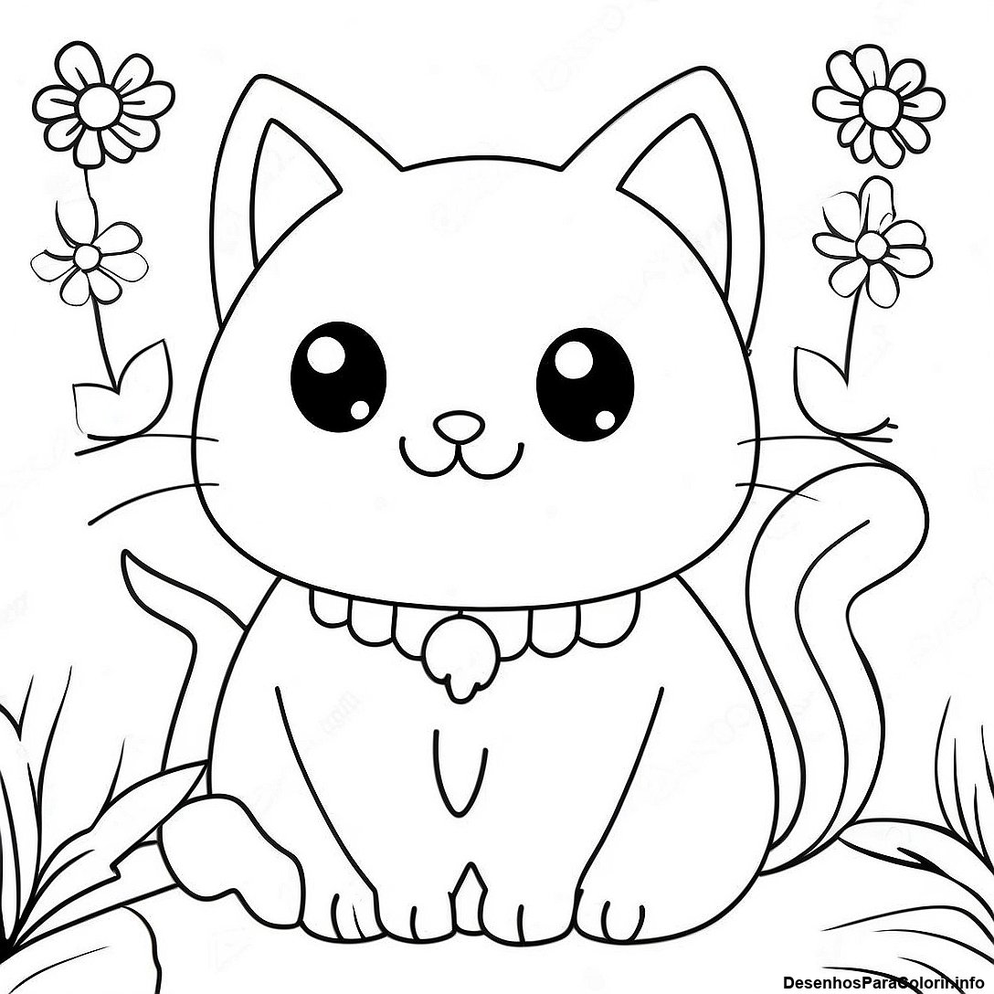 Página para Colorir do Gato Kawaii Adorável