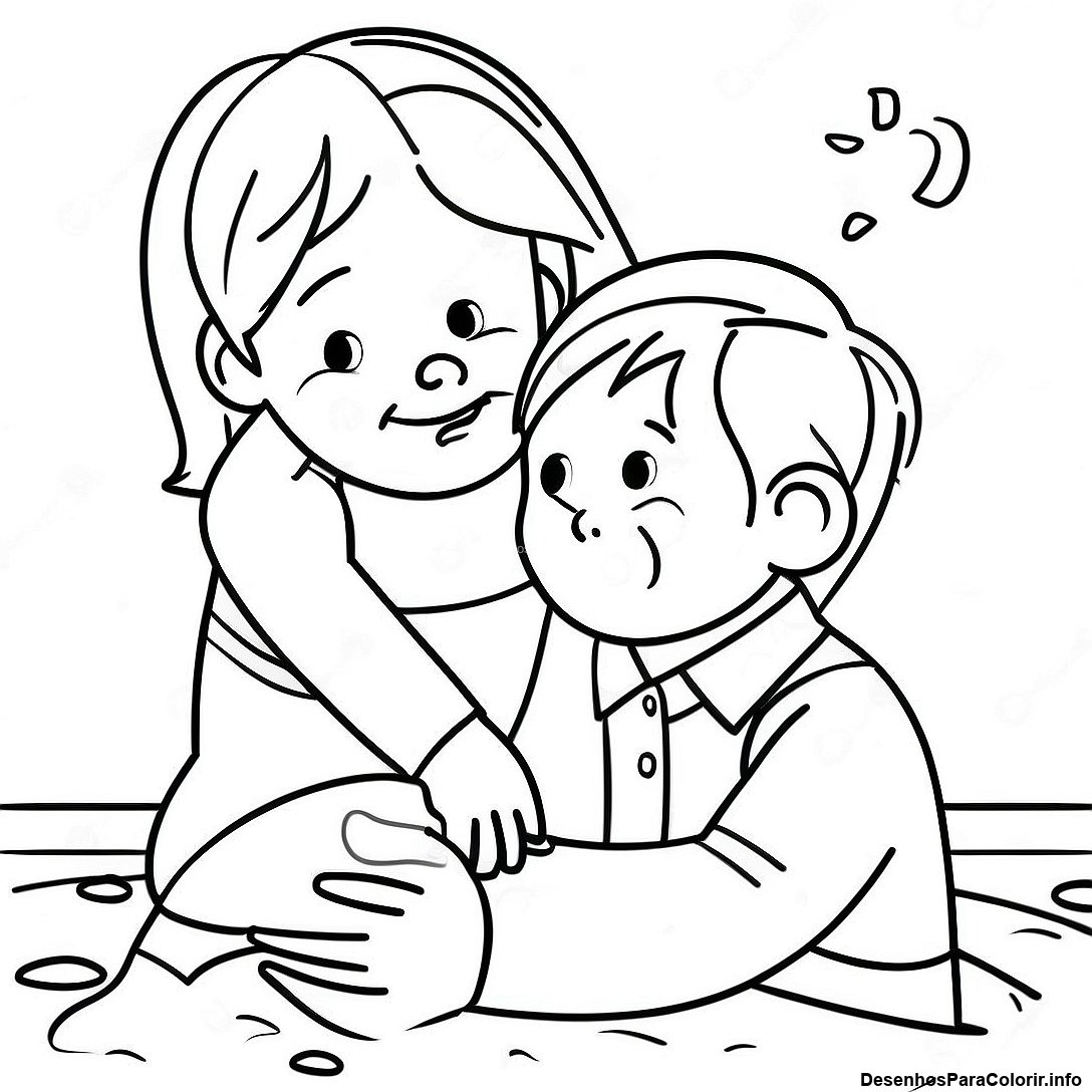 Baixar PDF Imprimível de Página Para Colorir De Mãe E Filho Brincalhões