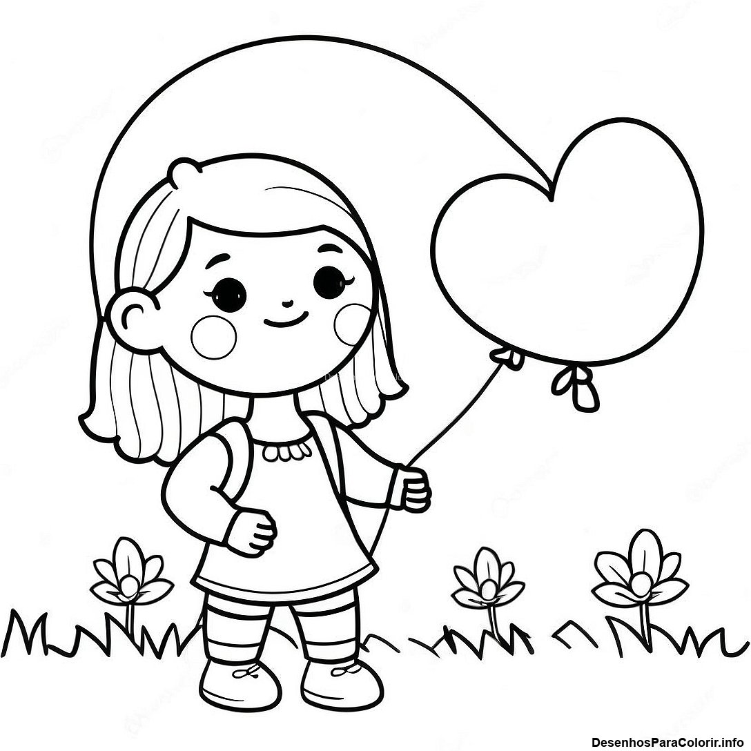 Baixar PDF Imprimível de Página Para Colorir De Uma Menina Adorável Com Balão