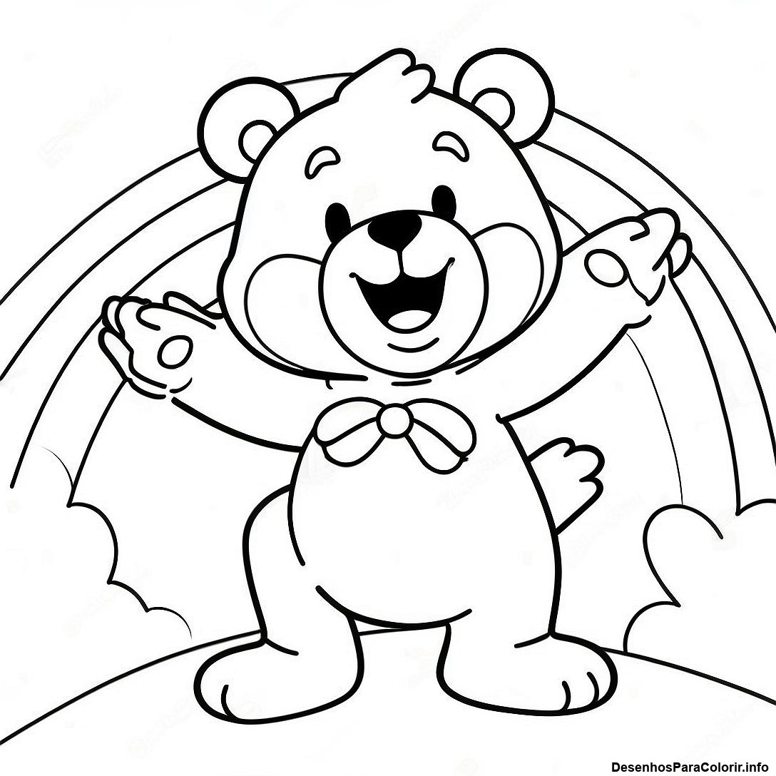 Baixar PDF Imprimível de Página Para Colorir De Urso Carinhoso Feliz Segurando Um Arco-Íris
