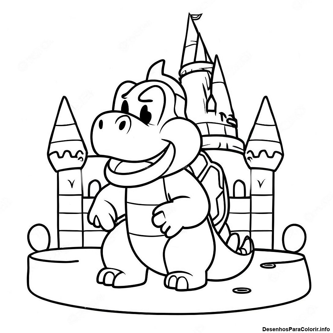 Baixar PDF Imprimível de Página Para Colorir Do Bowser Jr Em Um Castelo Colorido