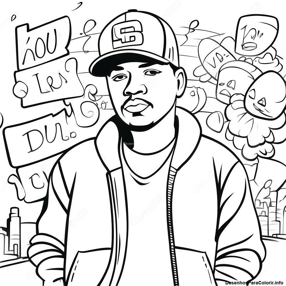 Baixar PDF Imprimível de Página Para Colorir Do Gangster De Hip Hop Com Parede De Grafite