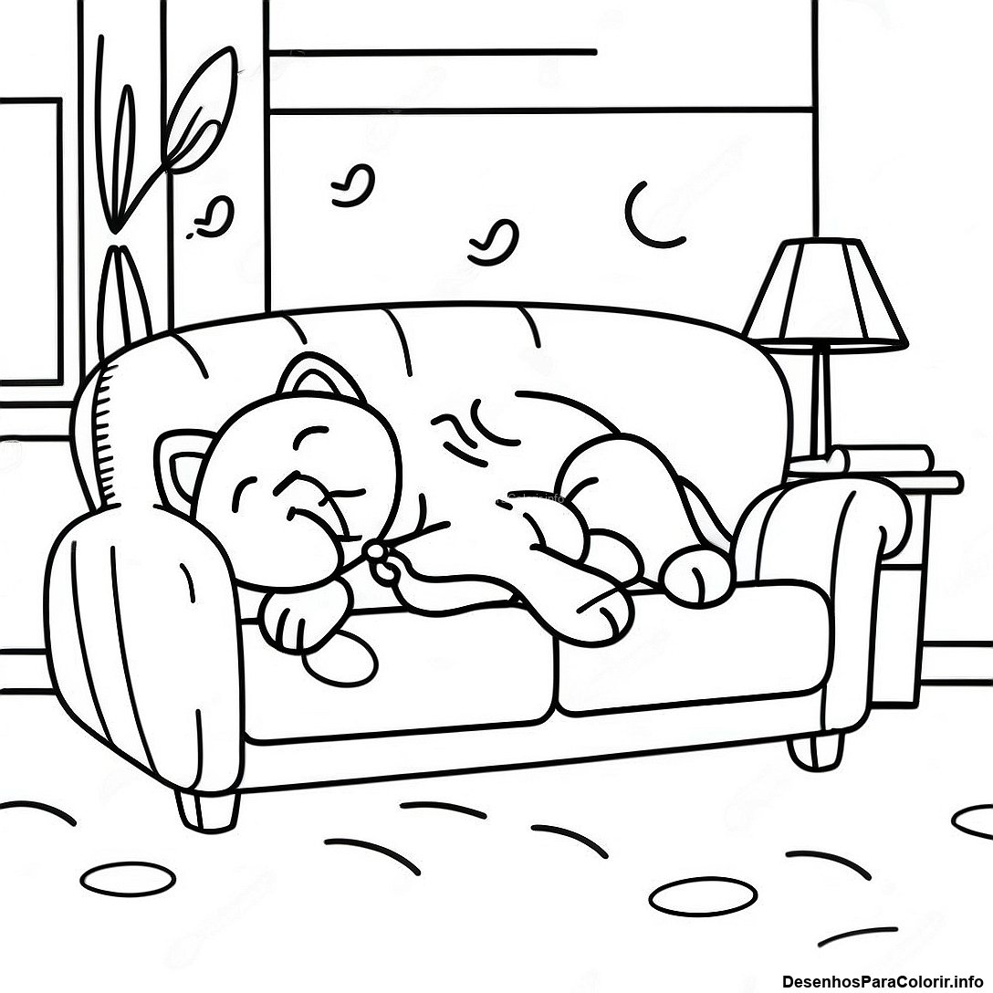 Baixar PDF Imprimível de Página Para Colorir Do Garfield Dormindo No Sofá