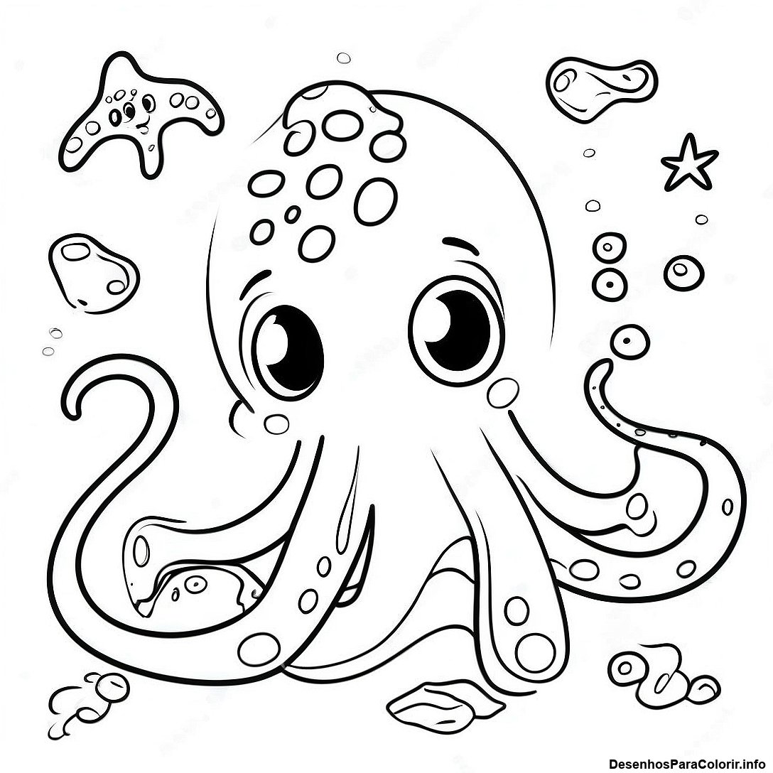 Baixar PDF Imprimível de Página Para Colorir Do Kraken Fofo Debaixo D'água
