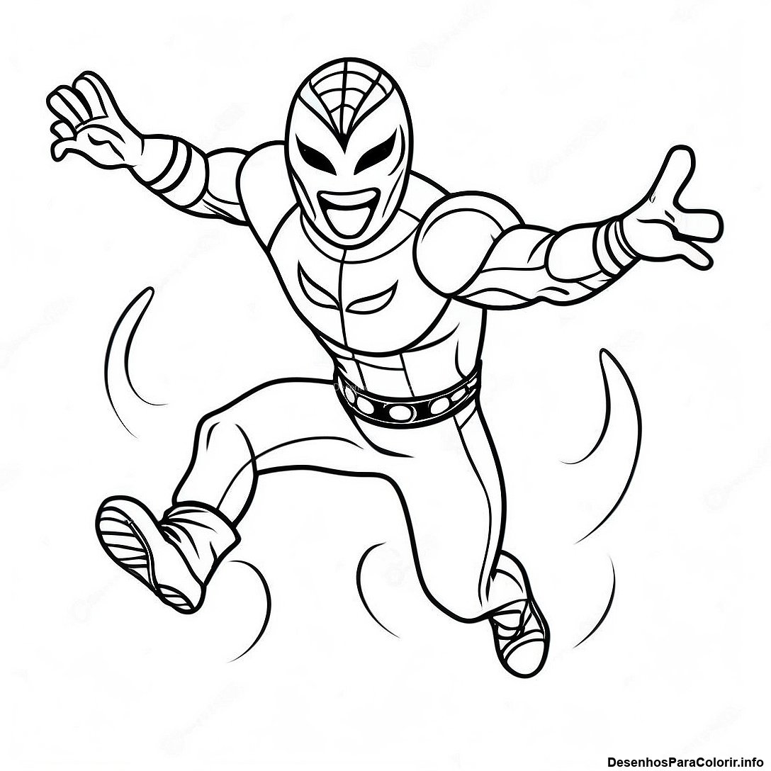 Baixar PDF Imprimível de Página Para Colorir Do Rey Mysterio Pulando No Ar