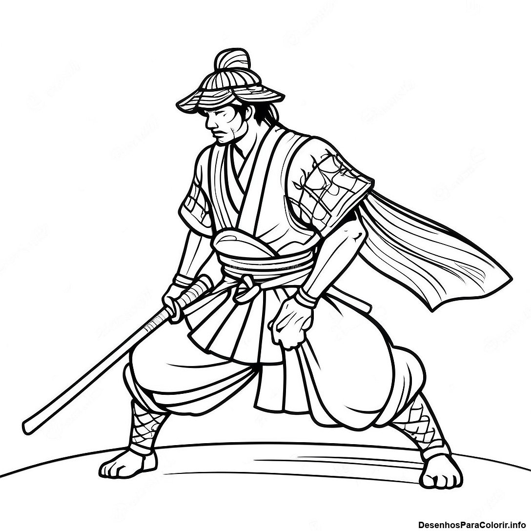 Baixar PDF Imprimível de Página Para Colorir Do Samurai Com Katana