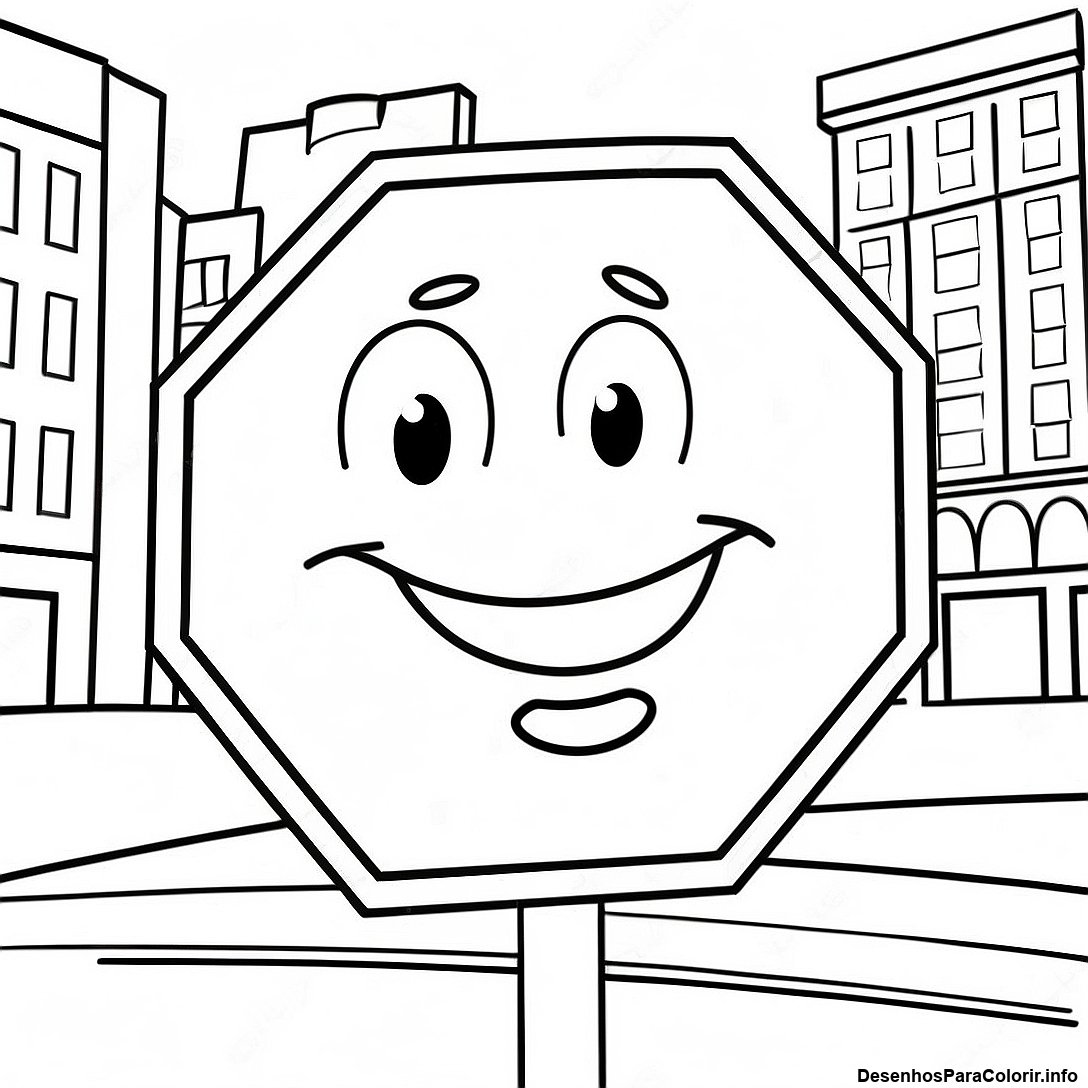 Página Para Colorir Do Sinal De Parada Em Um Desenho Animado Na Cidade