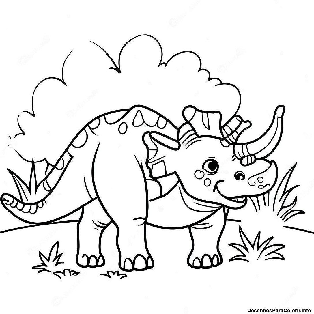 Página para Colorir do Tricerátopo Pastando no Parque Jurássico