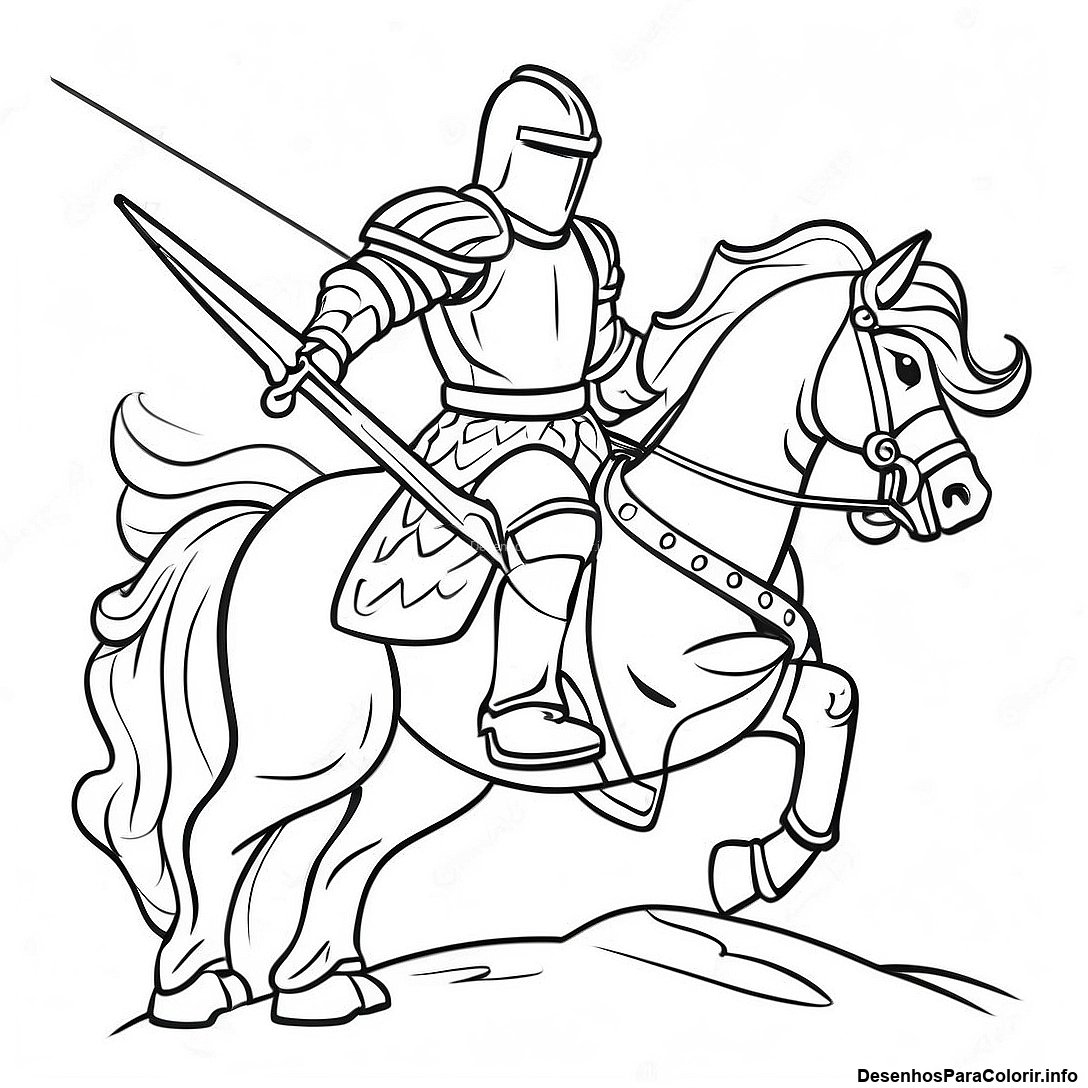Pagina Para Colorir Do Valente Cavaleiro Em Um Cavalo