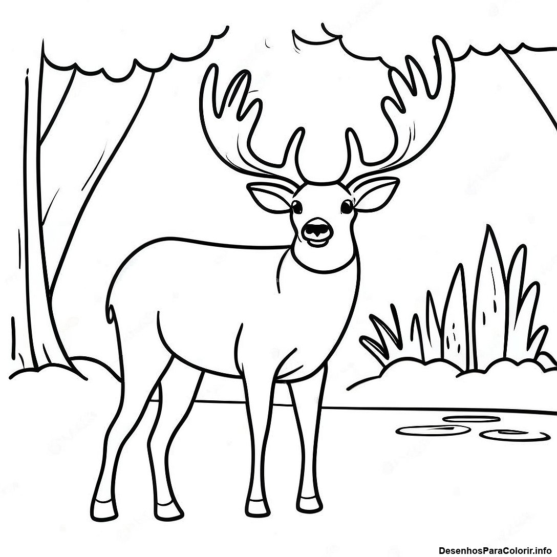 Baixar PDF Imprimível de Página Para Colorir Do Veado Buck Gentil Bebendo Água