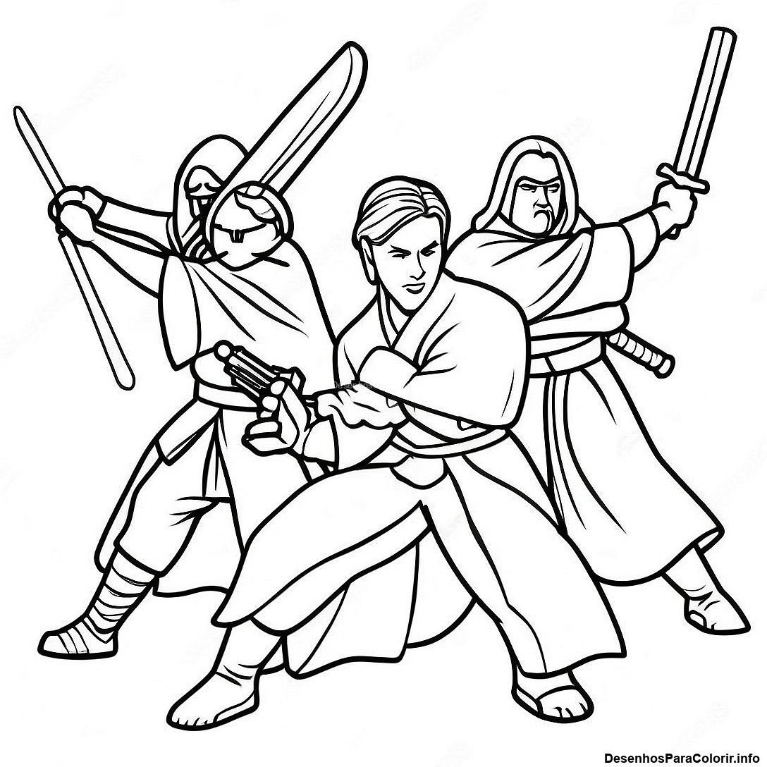 Página Para Colorir Dos Cavaleiros Jedi Em Ação