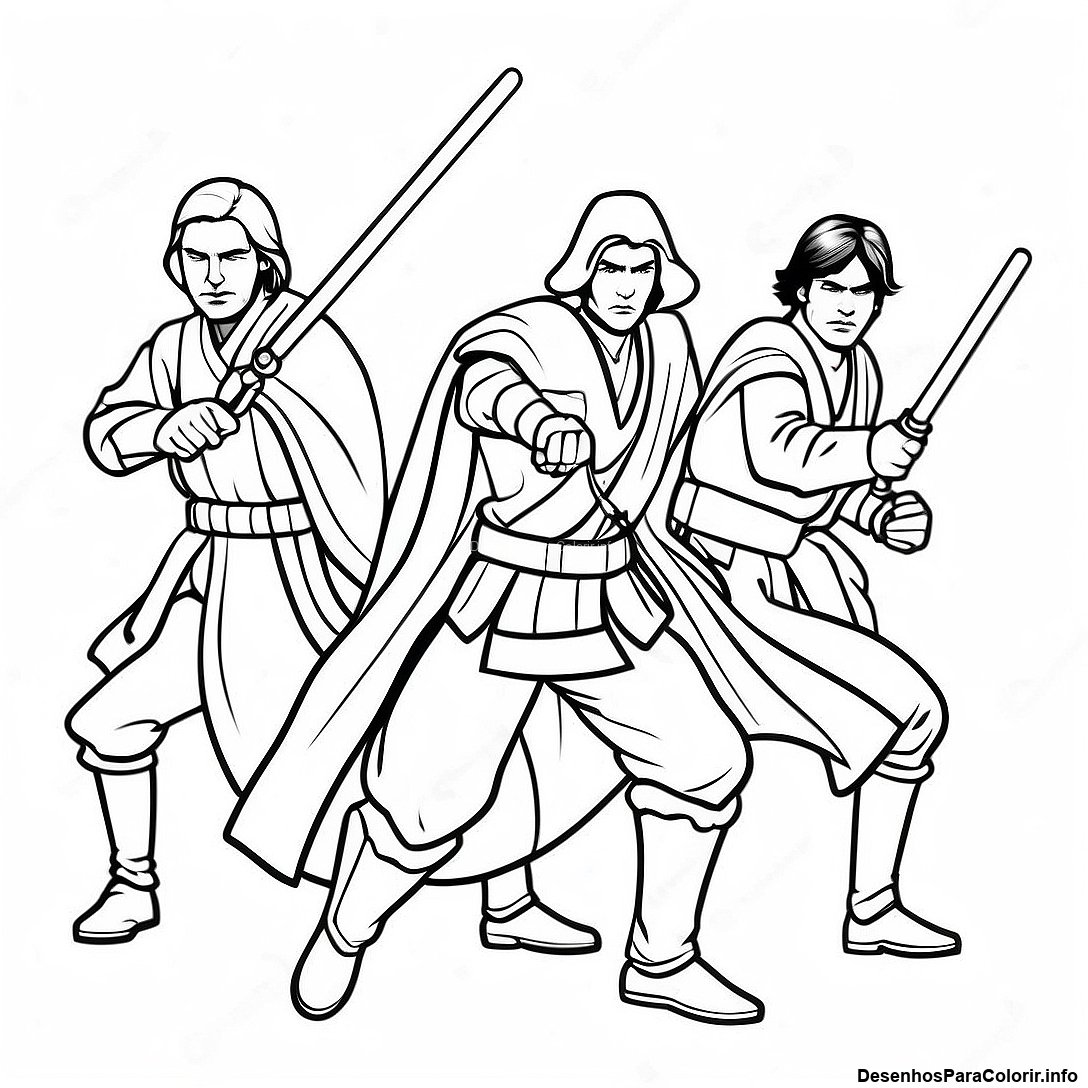 Página Para Colorir Dos Cavaleiros Jedi Em Ação