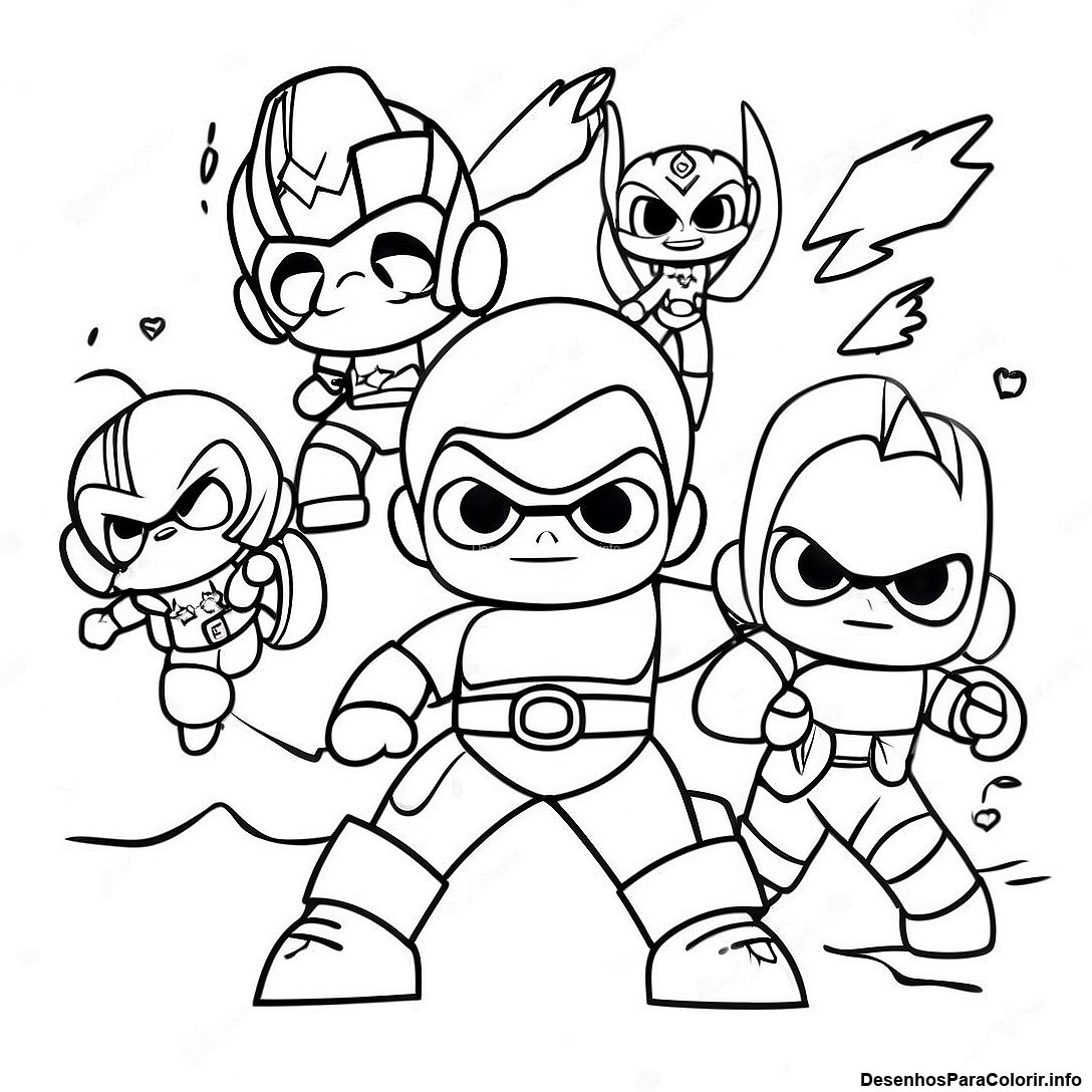 Baixar PDF Imprimível de Página Para Colorir Mini Força Heróis Em Ação