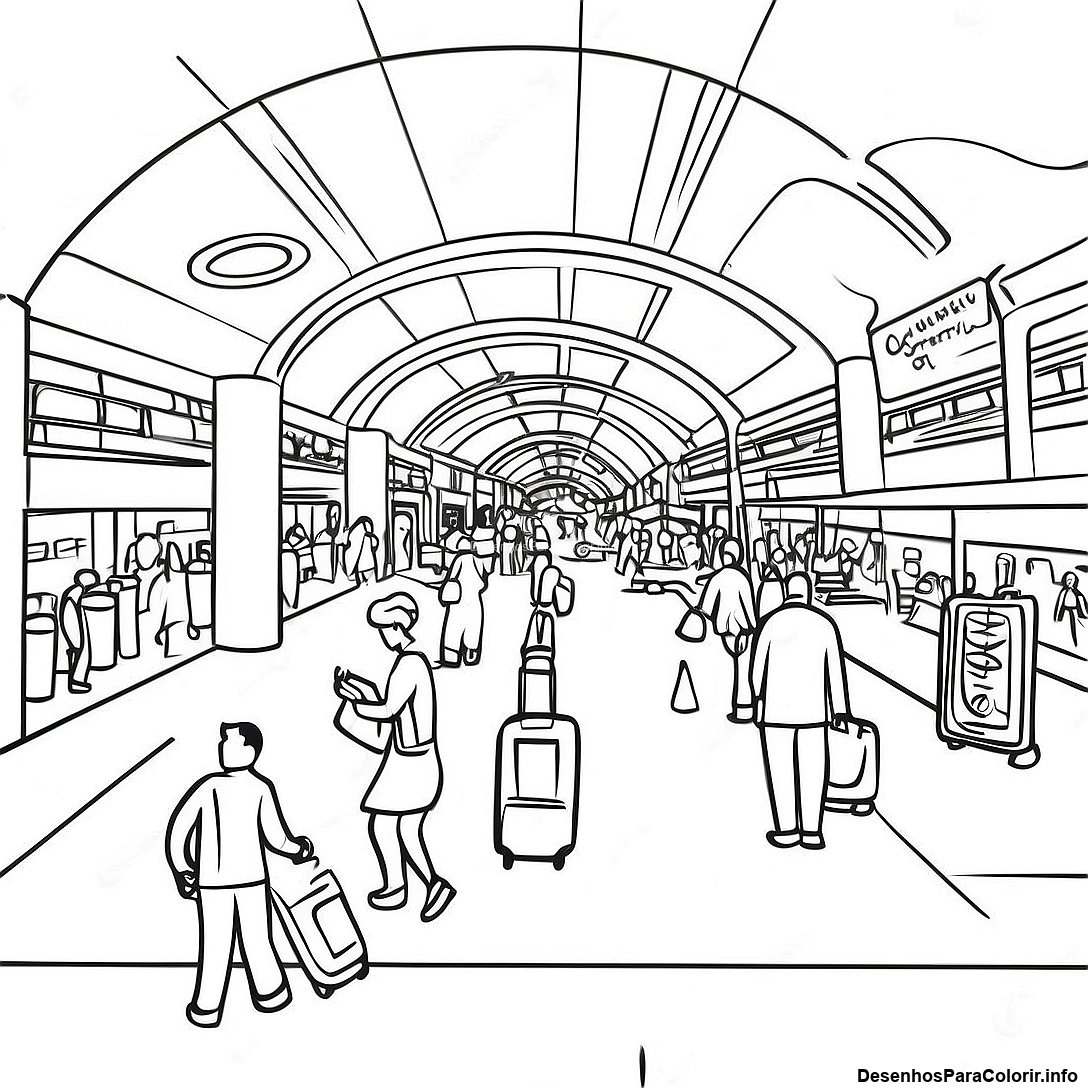 Página Para Colorir Terminal De Aeroporto Ocupado