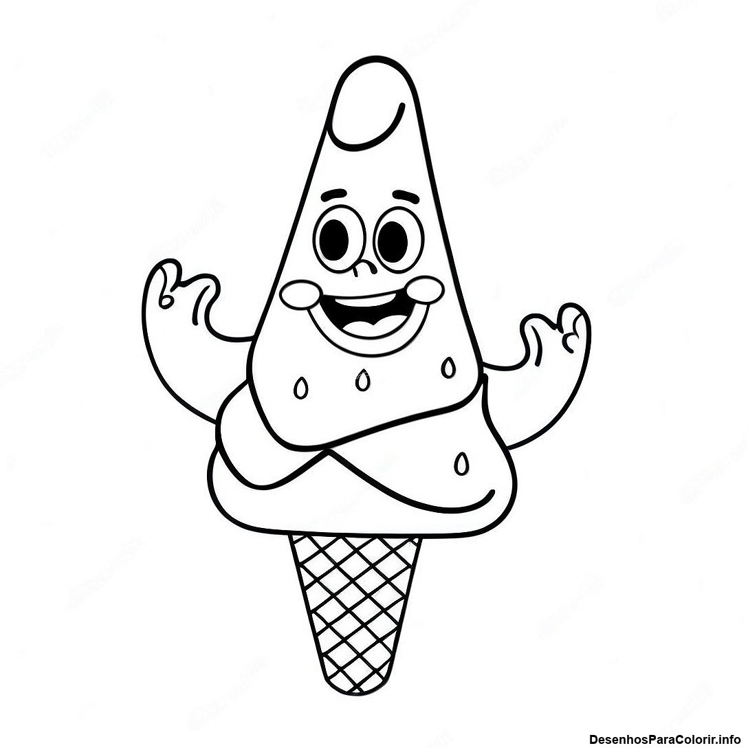 Patrick Estrela Com Um Grande Cone De Sorvete Para Colorir