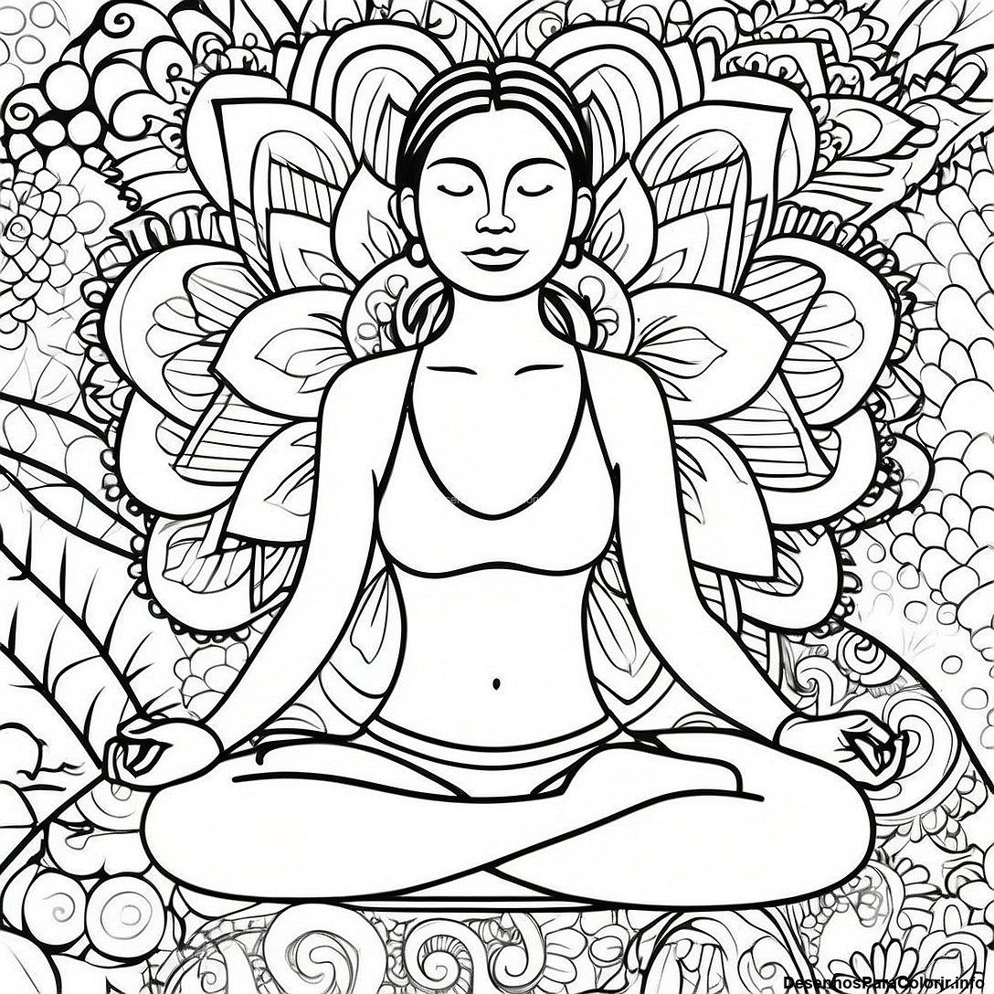 Baixar PDF Imprimível de Pose De Yoga Pacífica Página Para Colorir