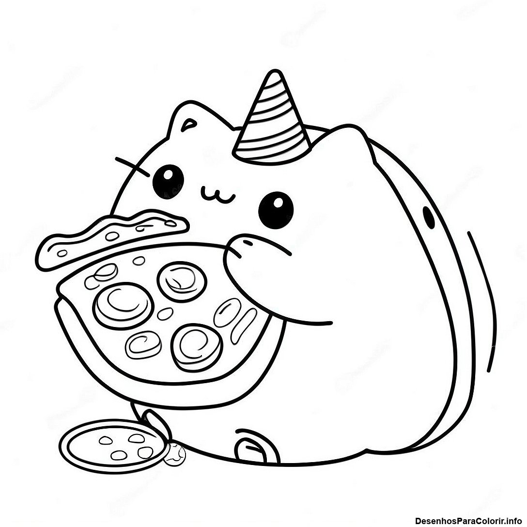 Pusheen Fofo Comendo Pizza Pagina Para Colorir
