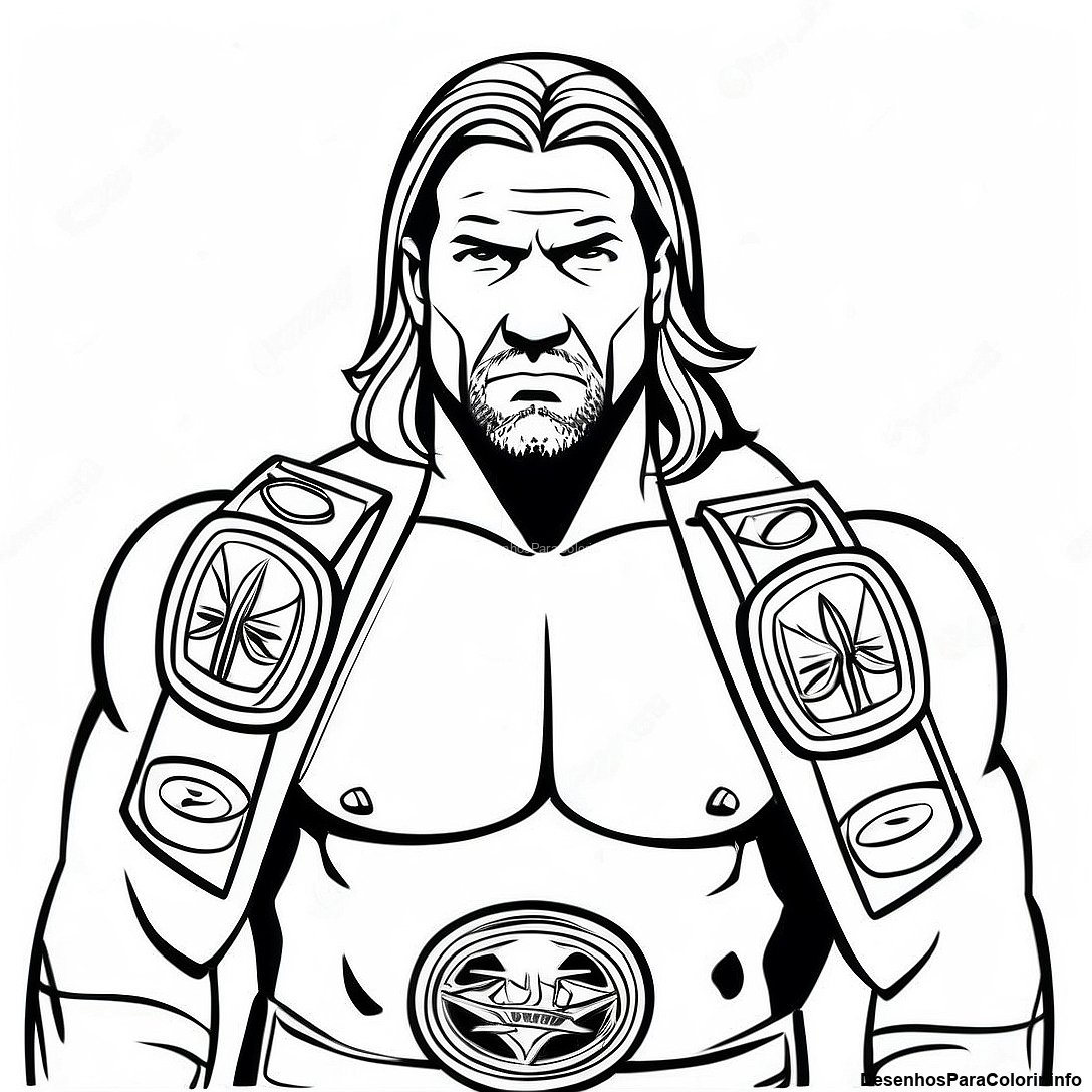 Baixar PDF Imprimível de Triple H Segurando Dois Cinturões Para Colorir